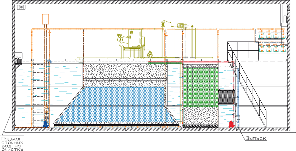 - БИОЛОГИЧЕСКАЯ ОЧИСТКА с процессами нитрификации-денитрификации, обеспечивающая удаление не только органических загрязнений, но и биогенных элементов (азота и фосфора).